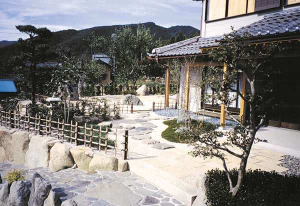 - 敦賀市金山に平成7年に移設された火葬場。裏庭の日本庭園は段差の大きな5段の滝を中心に作庭しました、松や梅など庭園木をふんだんに使い、敦賀市内でも最大級の日本庭園です。